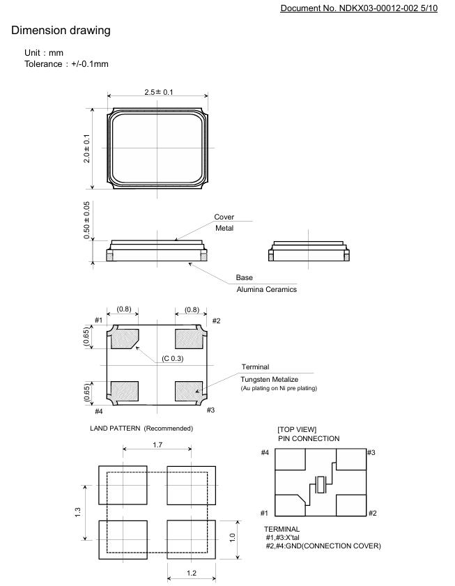 | 晶振規格參數 | NX2520SA-32MHZ-STD-CSW-2無源晶振 |