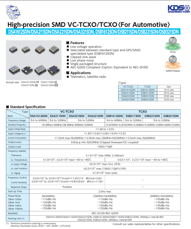 DSA321SDN 3225 21.250M VC-TCXO有源晶振,車規(guī)寬溫晶振